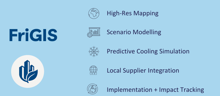 The idea behind friGIS is to combine greening and adaptation plans with data and intelligent analysis to find the most effective way to cool cities. Specifically, we offer a tool that cities can use to analyze cities based on extensive data and identify heat islands without the need for expert committees. friGIS then creates a customized adaptation plan, primarily through greening, tailored precisely to the structural, location, and weather conditions. We provide a concrete action plan for implementing the project, show how much energy costs can be saved through cooling, and how much carbon dioxide can be sequestered. The Scenario Modelling enables the user to compare different greening plans and helps cities to understand the effort of our solution in the big picture. We also provide a detailed cost calculation and show which funding programs and local subsidies can be applied for. After the project has been implemented, we offer comprehensive monitoring tools to track the results.